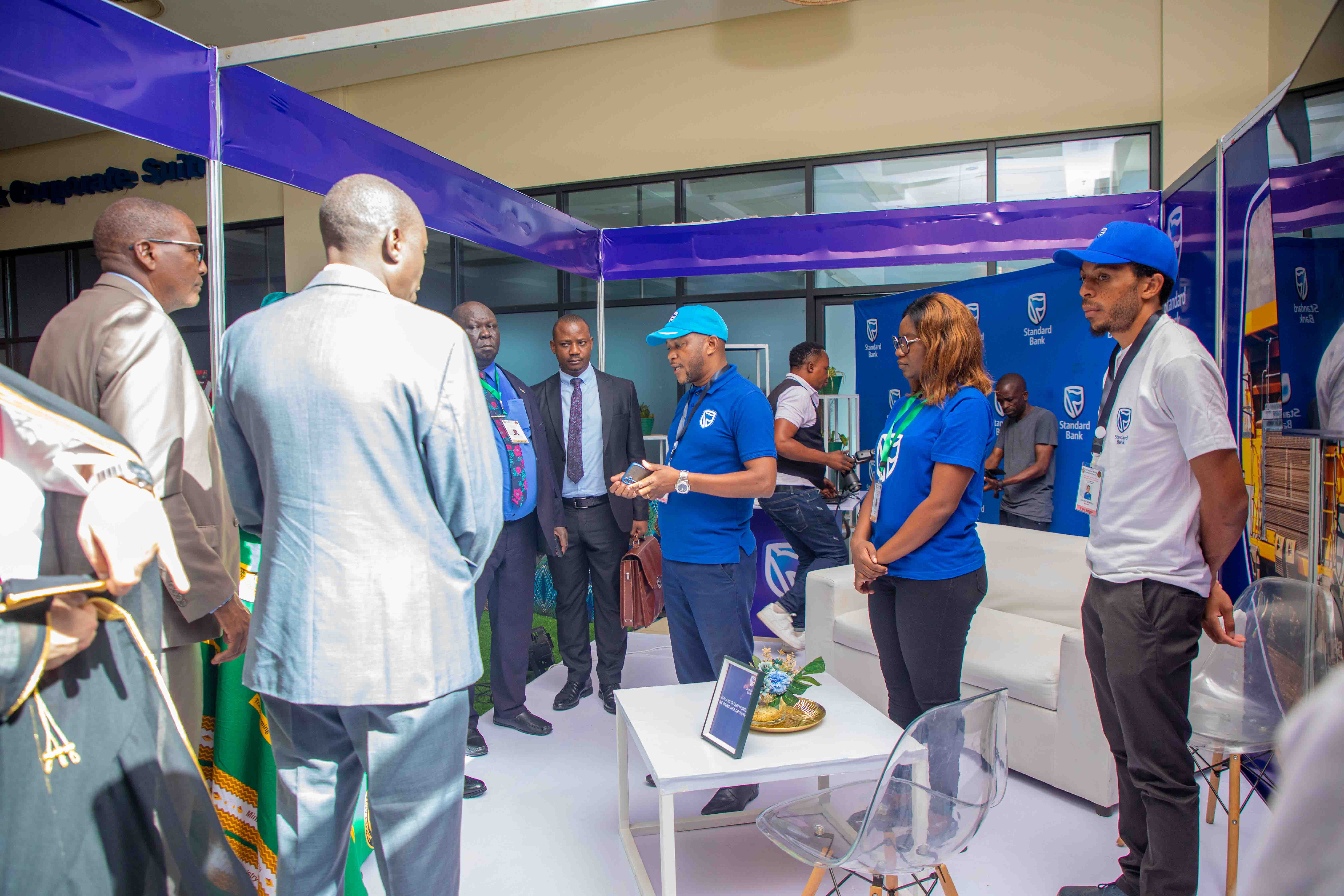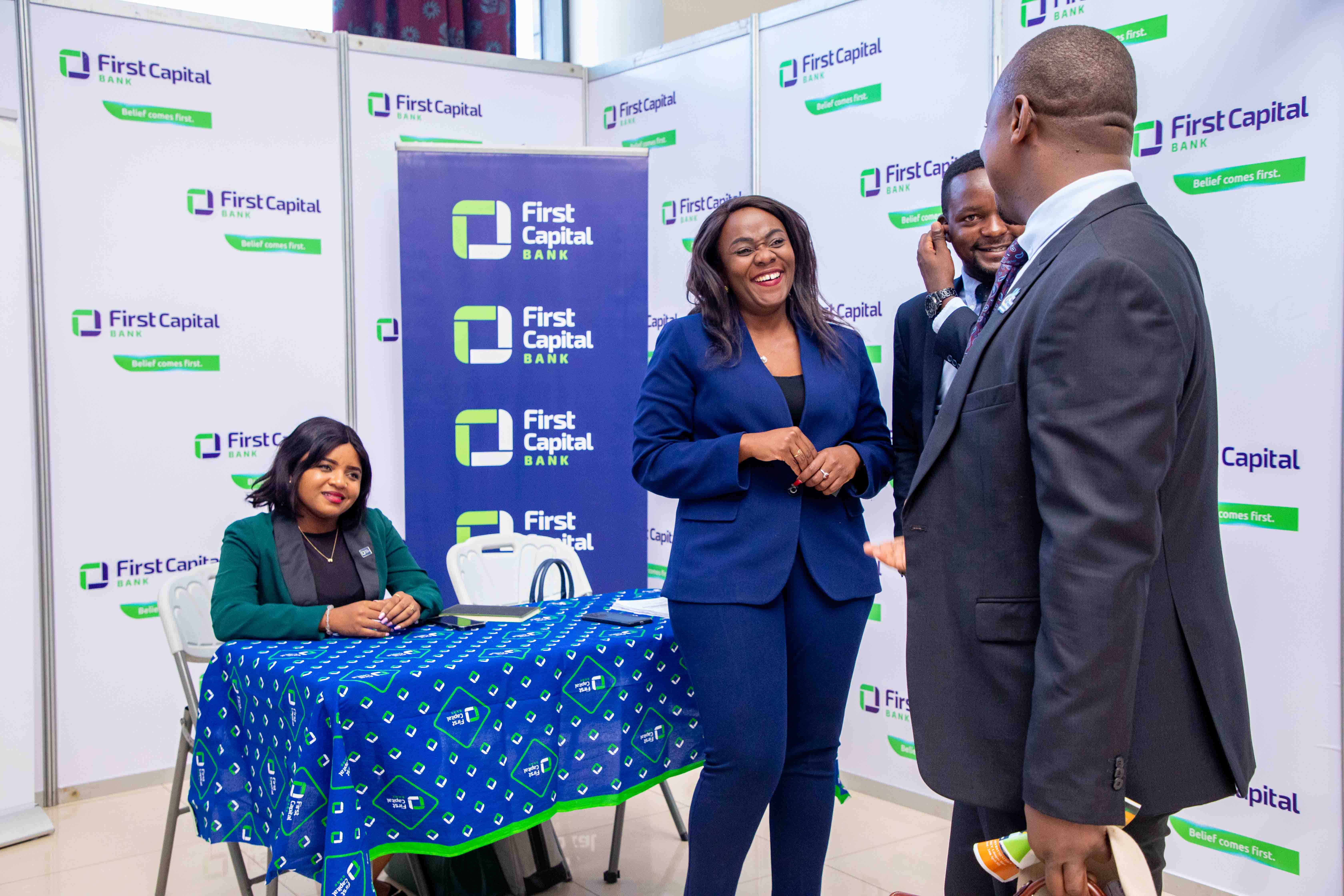 Minister of Mining Hon Monica Chang'anamuno inspecting the First Capital Bank (FCB) pavilion. FCB is...